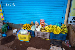 オフシーズンの雨季に、青いシャッターの前でおばちゃんがバナナ売ってた場所↑は、
