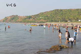 夕方は隣のバガトールビーチへバイタク100ルピーで行きました。
