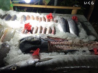レストランには新鮮な魚やエビが並んでいました!
