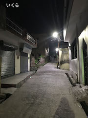 土砂崩れの曲がり角を超えたら、山の斜面の街の明かりがキラキラしていて