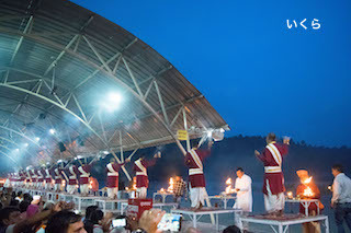 バラナシやハリドワールでも毎日やっている、聖なるガンジス川に向けたお祈り。