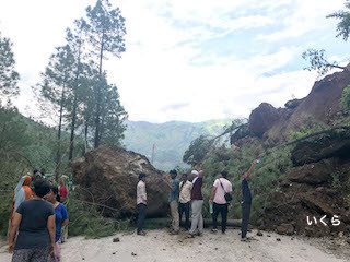 15:00 頃、恐れていた「土砂崩れ」にてバスが停車してしまいました・・。