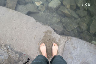 足を湖で洗って(全身を浸けている人も!)、お寺の中に入って一休み。