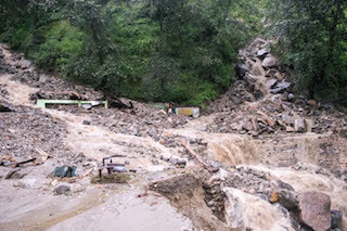 崩れた道路(川)を通る瞬間はとてもドキドキ😨