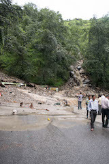 前方で土砂崩れが発生していて、通行止めになっているとのこと。。
