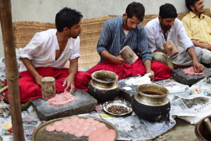 ここの結婚式では、マトンのカレー、カバブ、つみれみたいな料理…と、ひたすらマトン肉料理が続く のだそう。