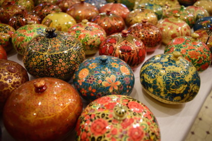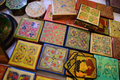 紙を水でぐちゃぐちゃねとねとにして、固めて、乾かして、色づけする、カシミールの工芸品。