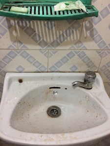 こんな汚い洗面台がある部屋に、たった2時間寝るのに600ルピー(1200円)…